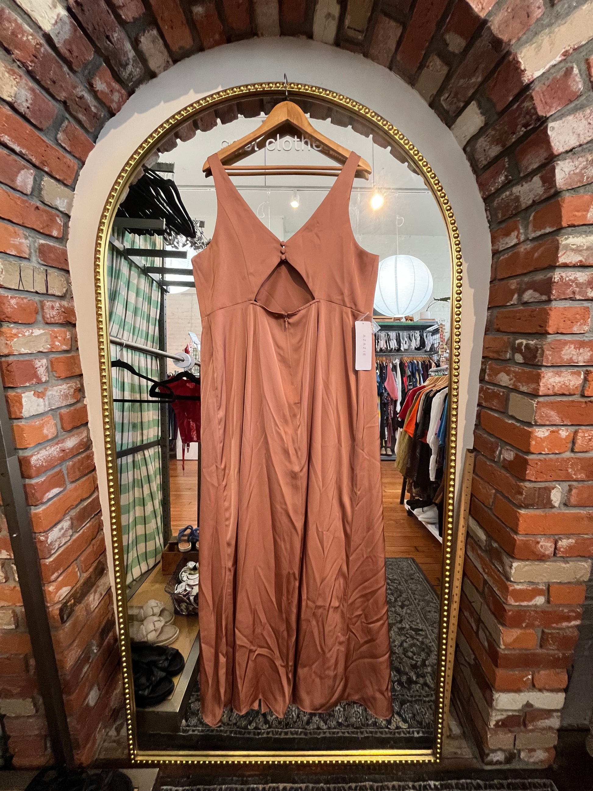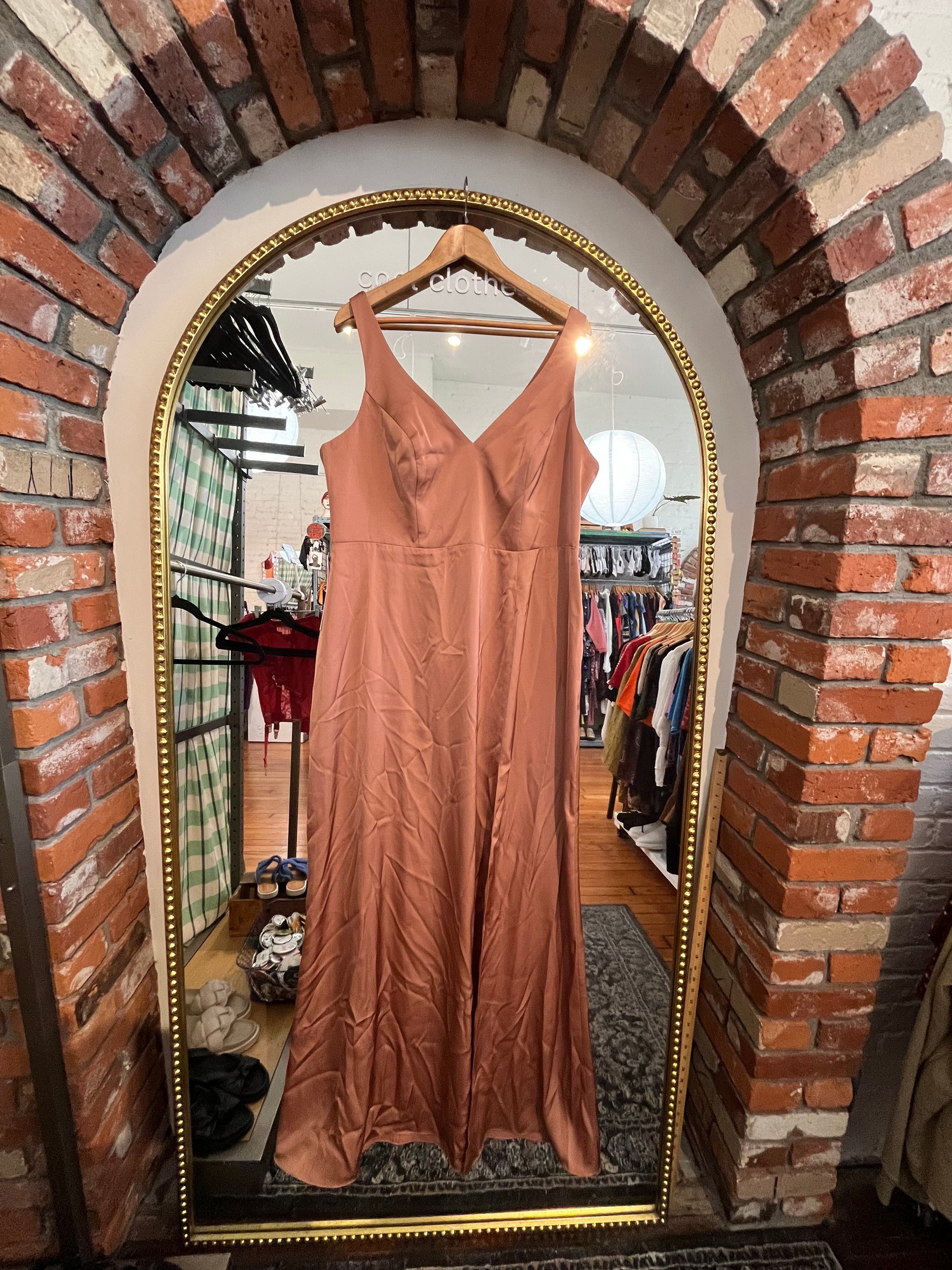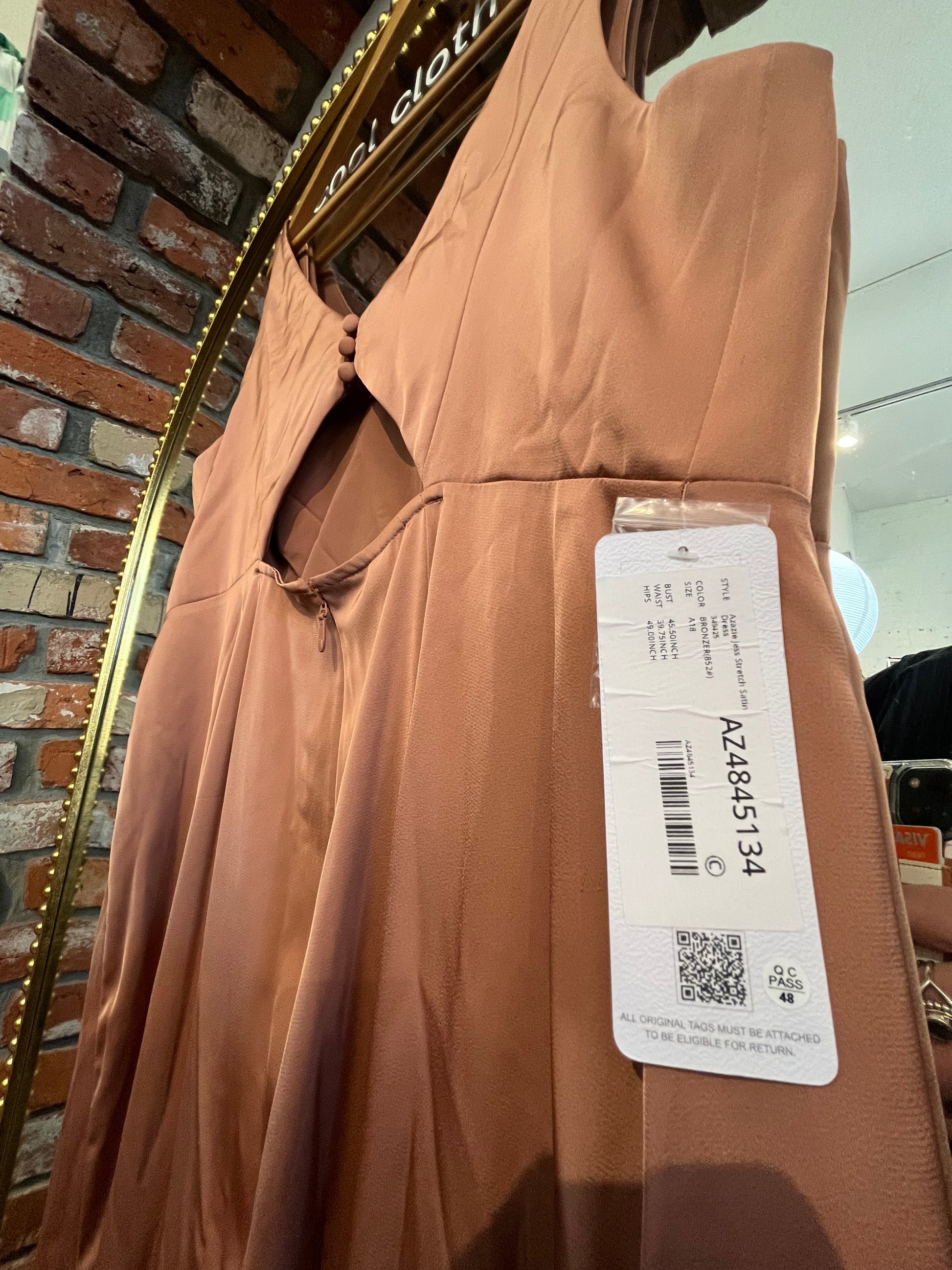 Zipper closure on back. Metallic copper colour. 3 button closure on back. NWT.
