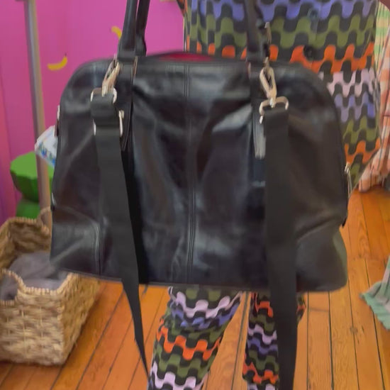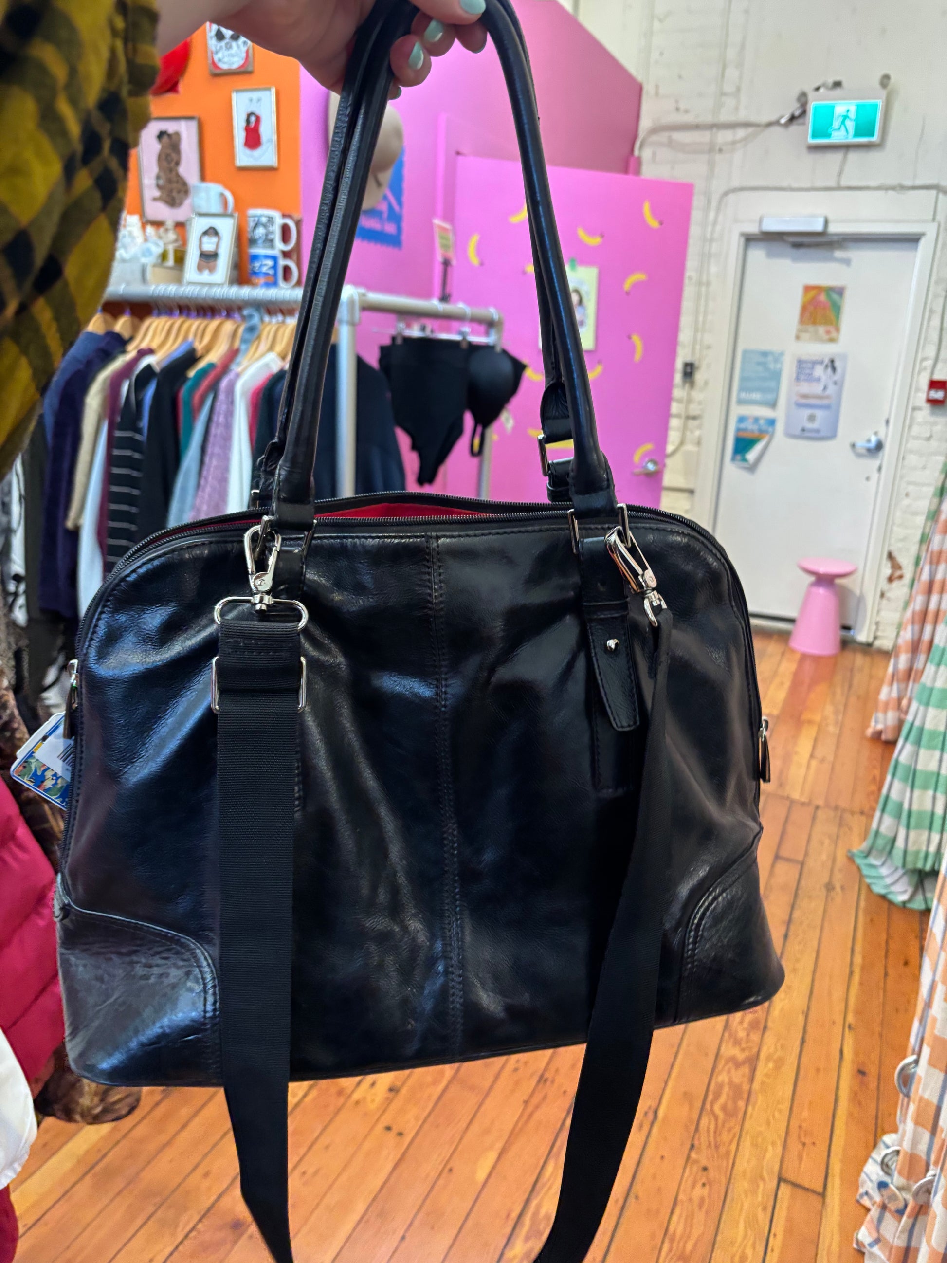 big black with red satin AS IS VINTAGE Danier Leather purse - cross boxy