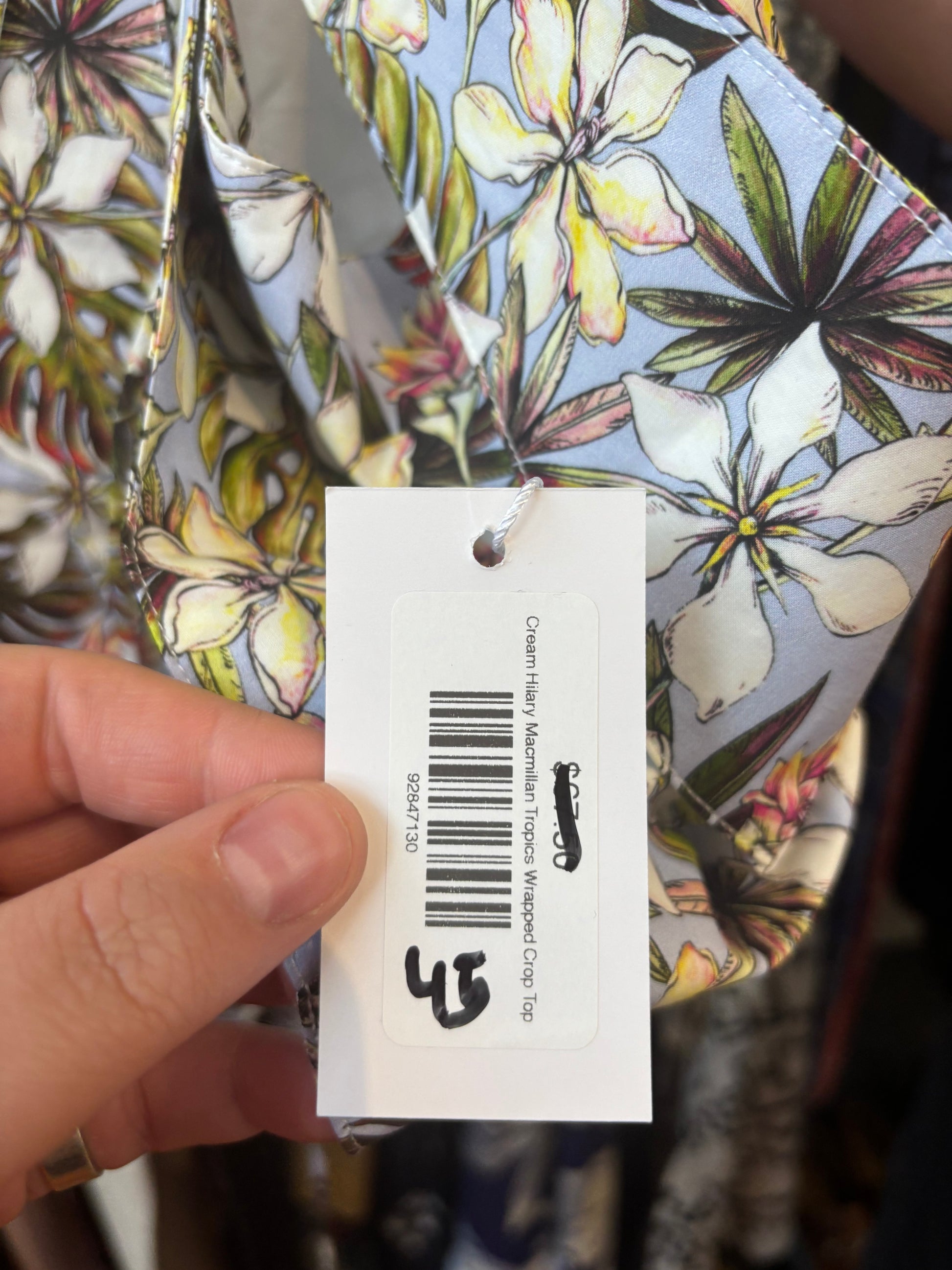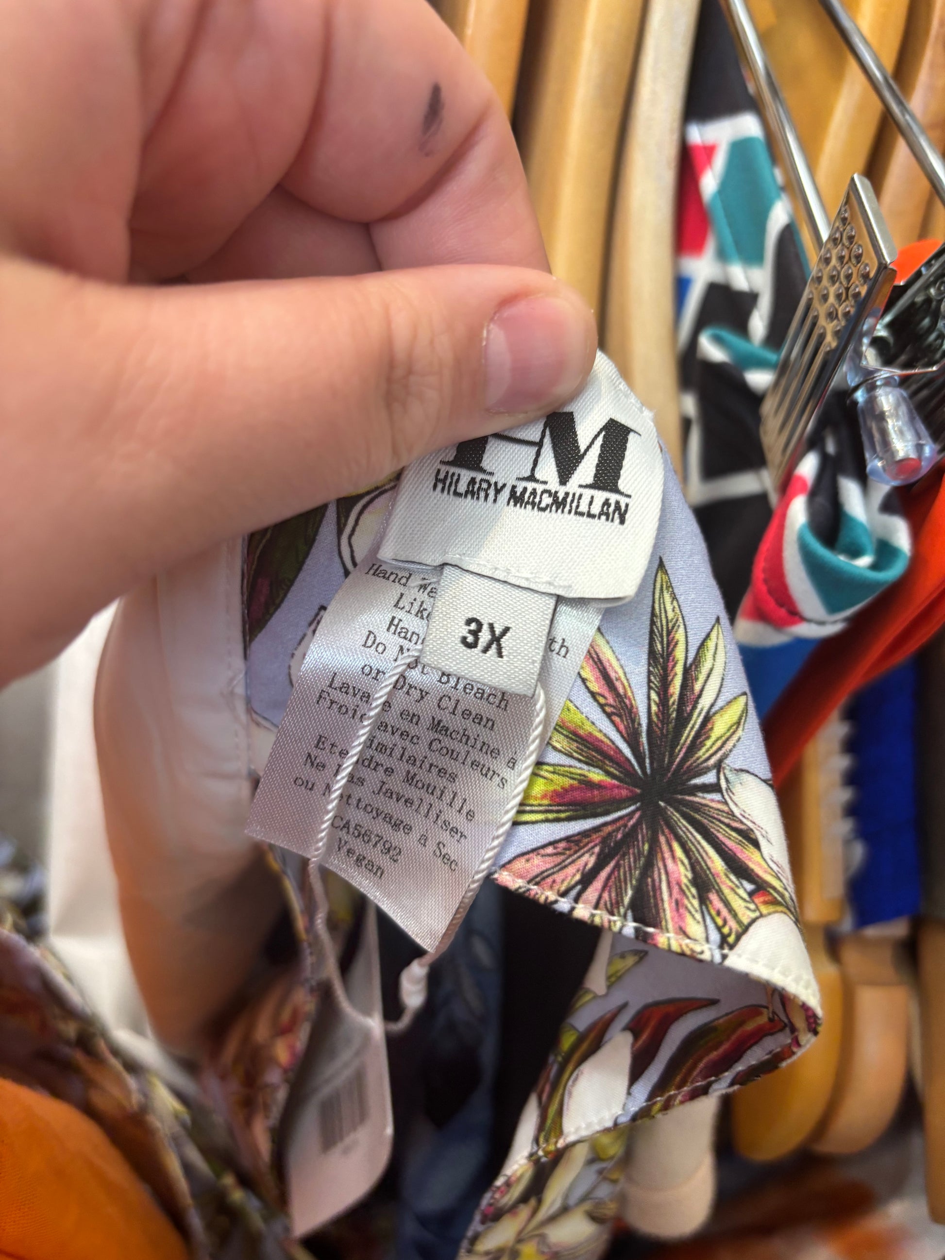 Size 3X Blue Hilary Macmillan Printed Lace Up Top (Plants)