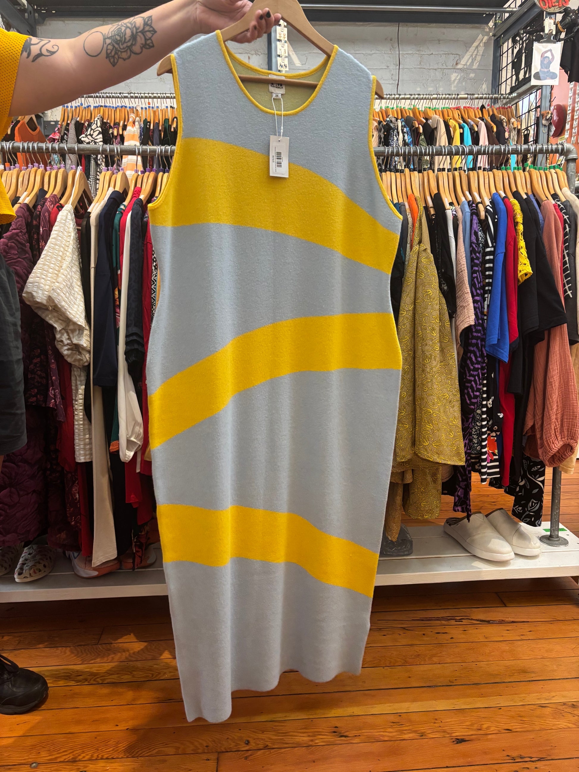 Blue/Yellow Hilary Macmillan Knit Swirl Midi Dress