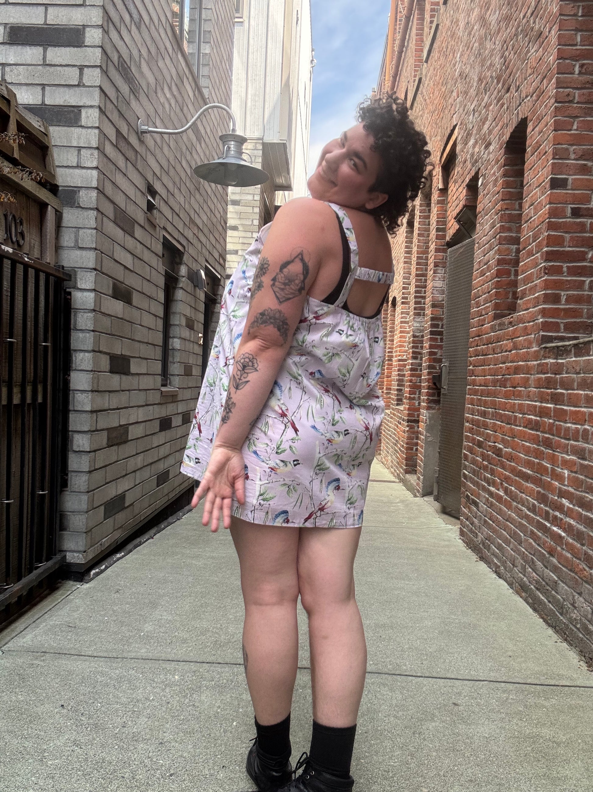 Size 4X Purple Hilary Macmillan Printed Mini Dress (Birds)
