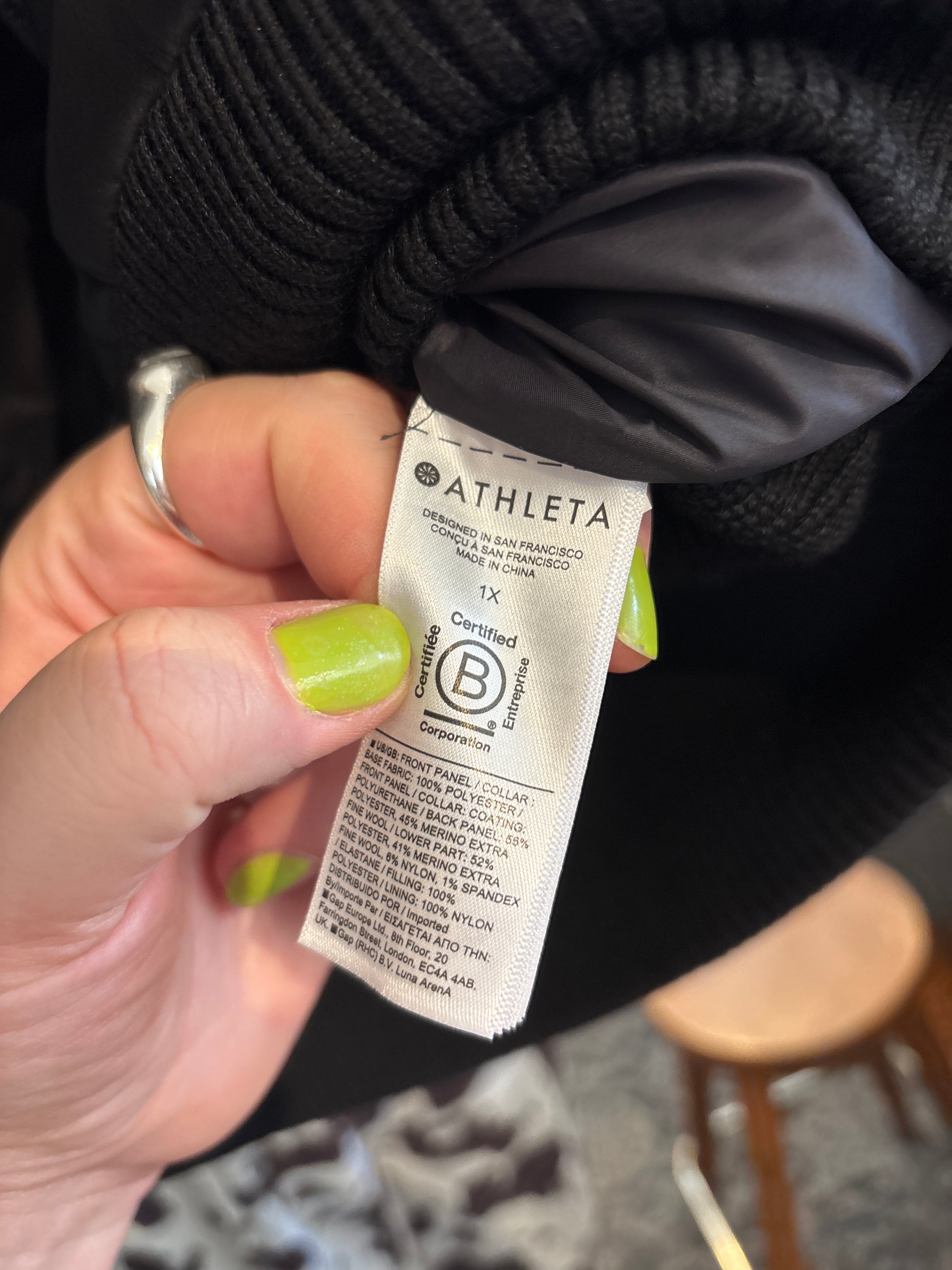 size 1X black merino blend Athleta vest - puffer