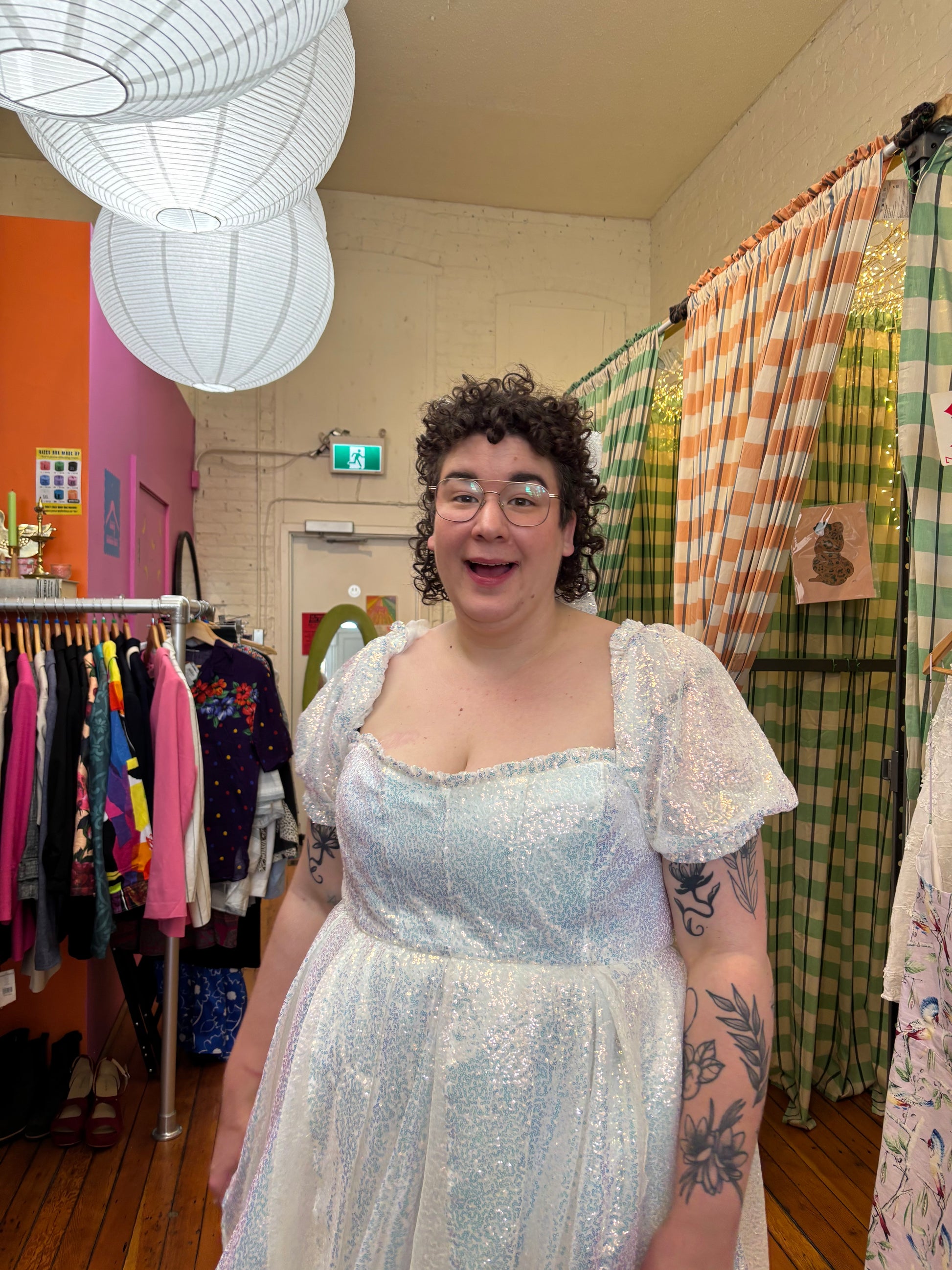 Size 20 full sequin Unicorn Tears Fanciful Doll Crystal Gown - wedding dress