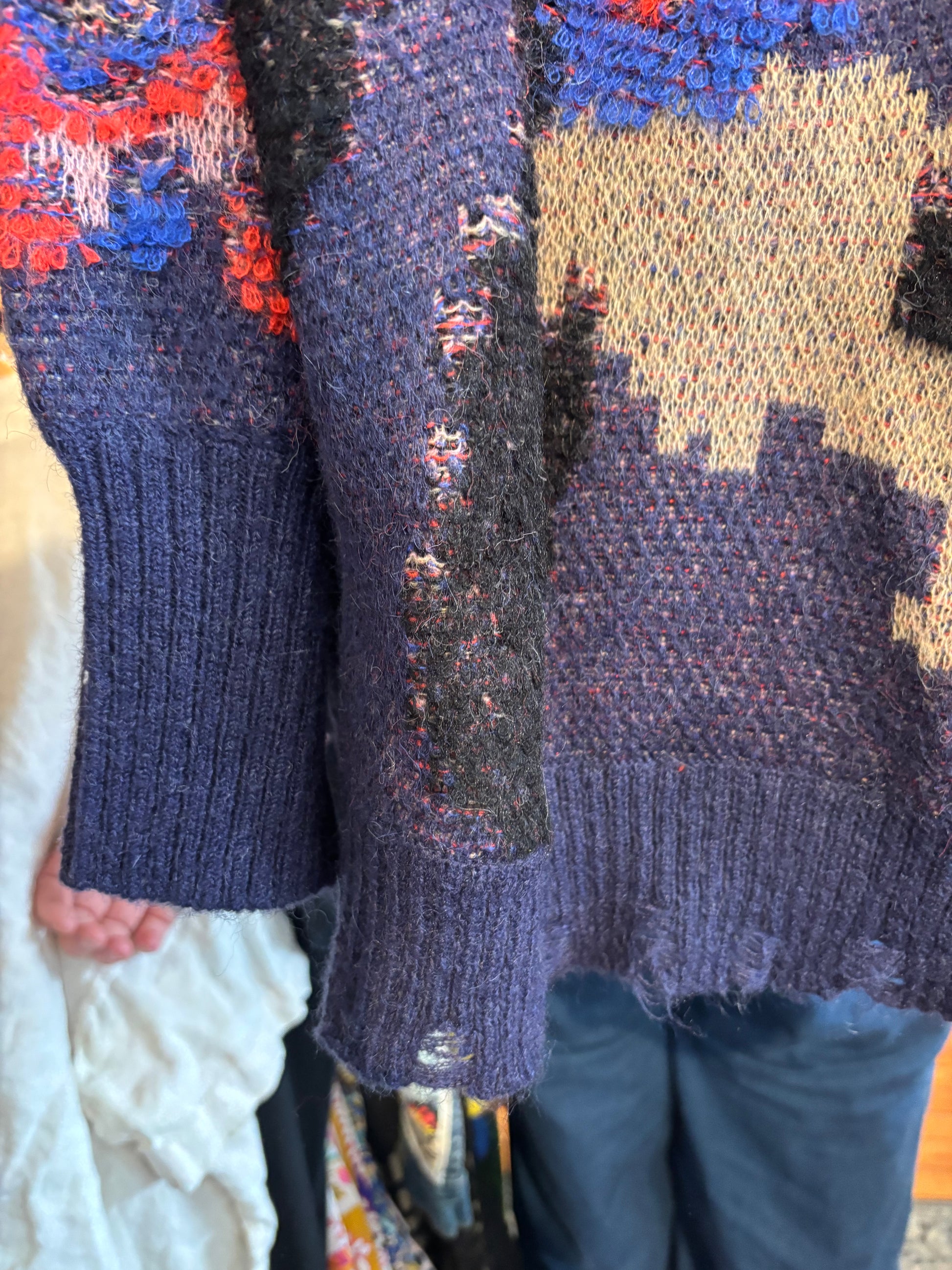 size 2X blue with red knit Anthropologie cardigan - boxy