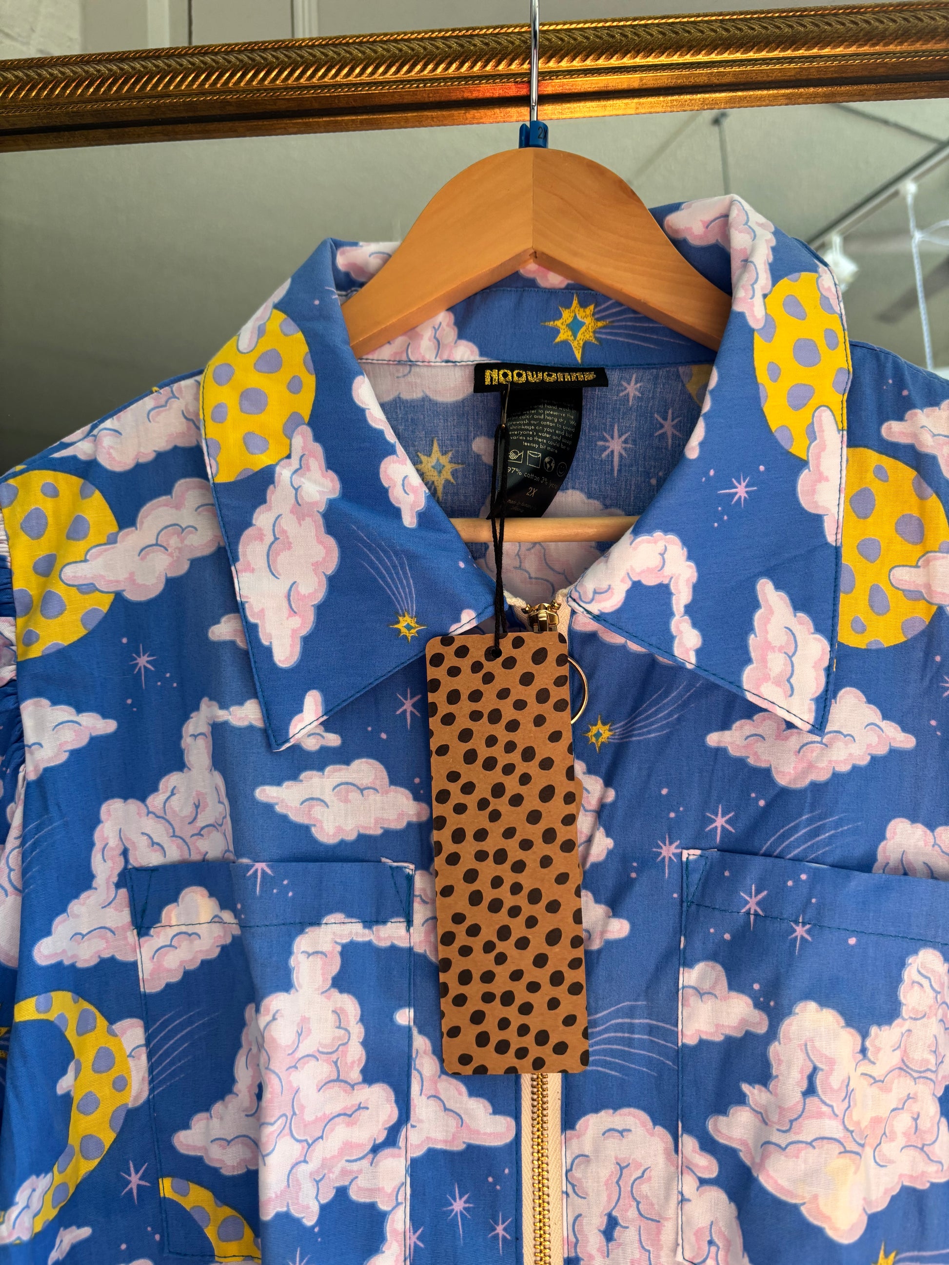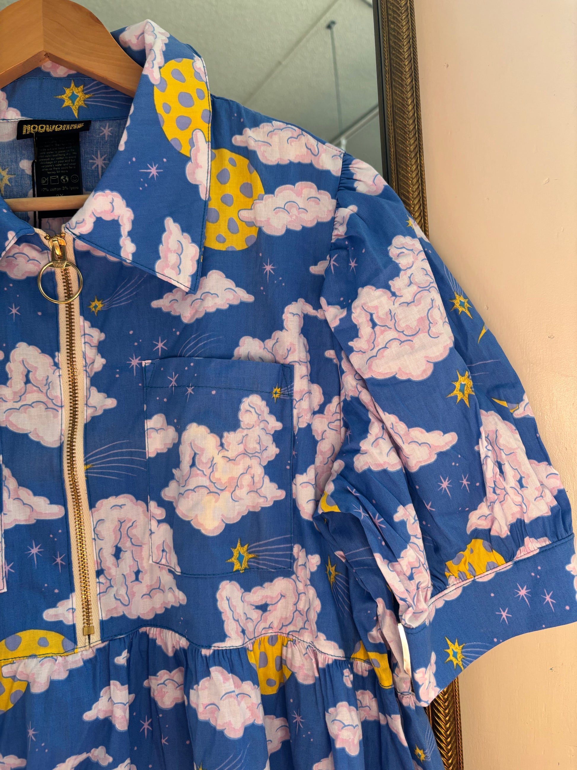 This babydoll dress features an empire waist and '70s-style o-ring zipper at the bust. It falls mid-thigh in length, has a classic collar, two patch pockets on the chest, and puff sleeves. It's crafted from our lightweight cotton poplin for an airy silhouette. Style it with tall boots for a 70's look this fall or with Mary Janes a la Courtney Love. 🤘