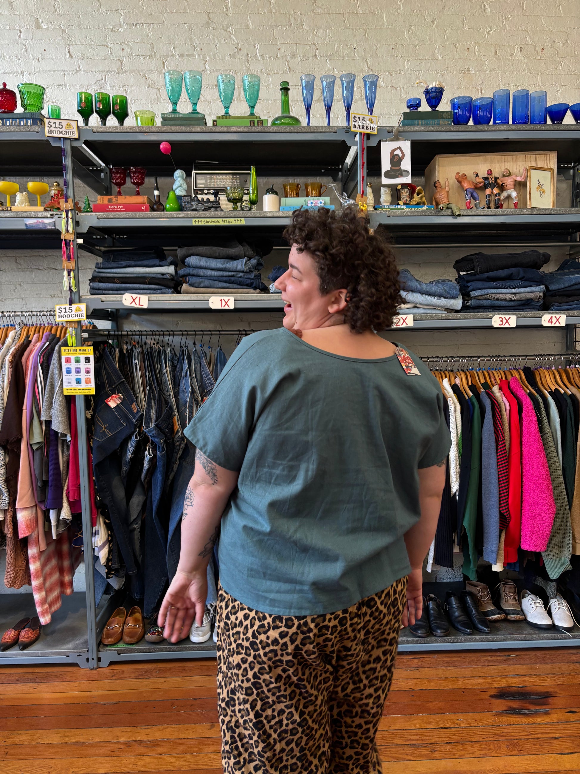 size 2X Nettles Tale teal linen Made in Canada top - boxy