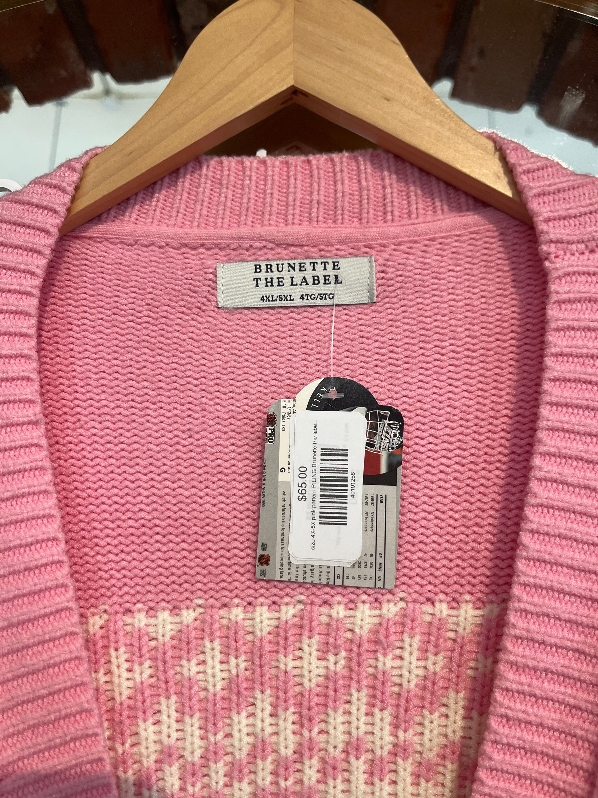 size 4X-5X pink pattern PILING Brunette the label cardigan - thick knit