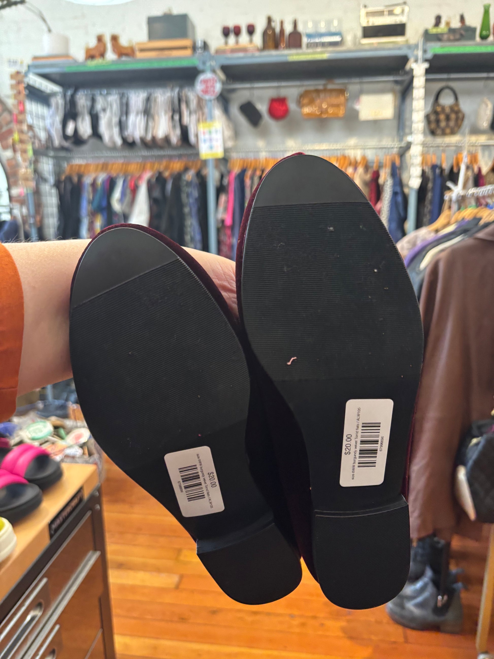 size 8WW burgundy velvet Torrid flats