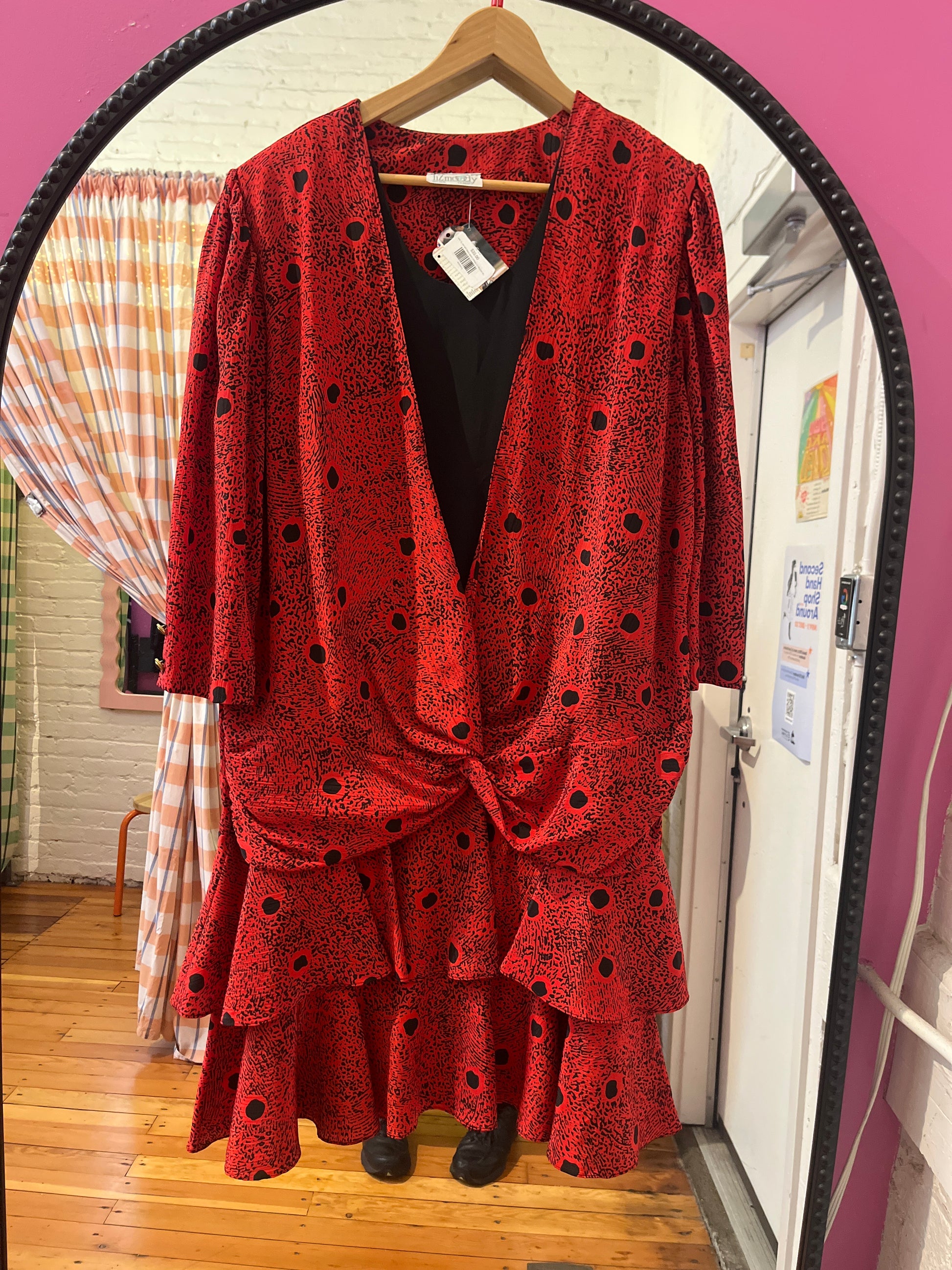 size XL red with black spots vintage Liz Moody 80s dress