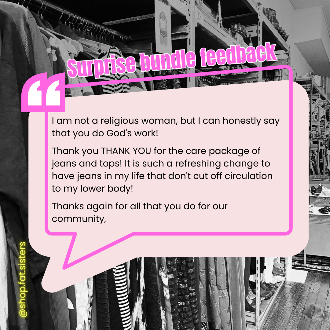 There's no guarantee on fit or our ability to get it "right" with these surprise bundles. Here's a review on the first one we sent out: